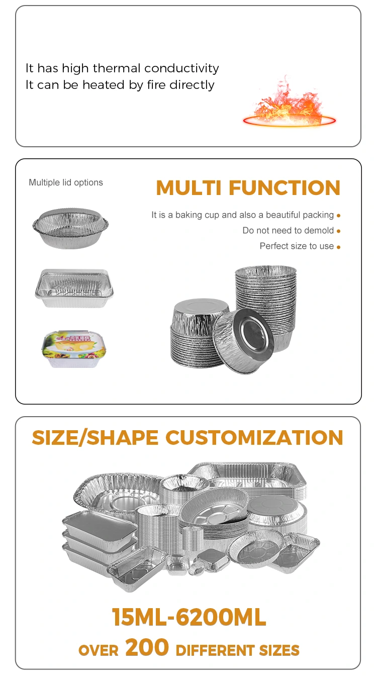 ​Yunchu aluminum foil supplier Cake baking cup silver Aluminum Foil Food Container baking and shaping two-in-one, multi-use aluminum foil container, baking, barbecue Wide range of use, can be heated over open flame and resistant to baking, instead of pots, baking shops, homes, food factories can be applied, small size to enjoy baking life, can be used as a baking mold, integrated molding does not Katlanmalı ve şekillendirilmiş, süslü kullanım, bir kalıp çok amaçlı çok amaçlı, puding, kek, yumurta tartları, buğulanmış yumurta, barbekü vb., Anti-çubuk ve demoldun kolay, yanması kolay değil, içten içe, açık alev ısıtma direnci ve kırılmayacak şekilde serbest bırakılabilir, kırılmadan küçük atıştırmalıklar ve çikolatalardan kaynaklanabilir ve çikolatalı olabilir ve çikolatalı olabilir ve çikolatalı olabilir.