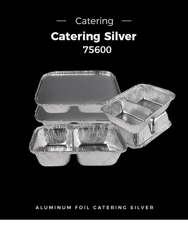 • Tek kullanımlık bölme fast food gümüş alüminyum folyo kaplarTek kullanımlık bölme fast food gümüş alüminyum folyo kaplar