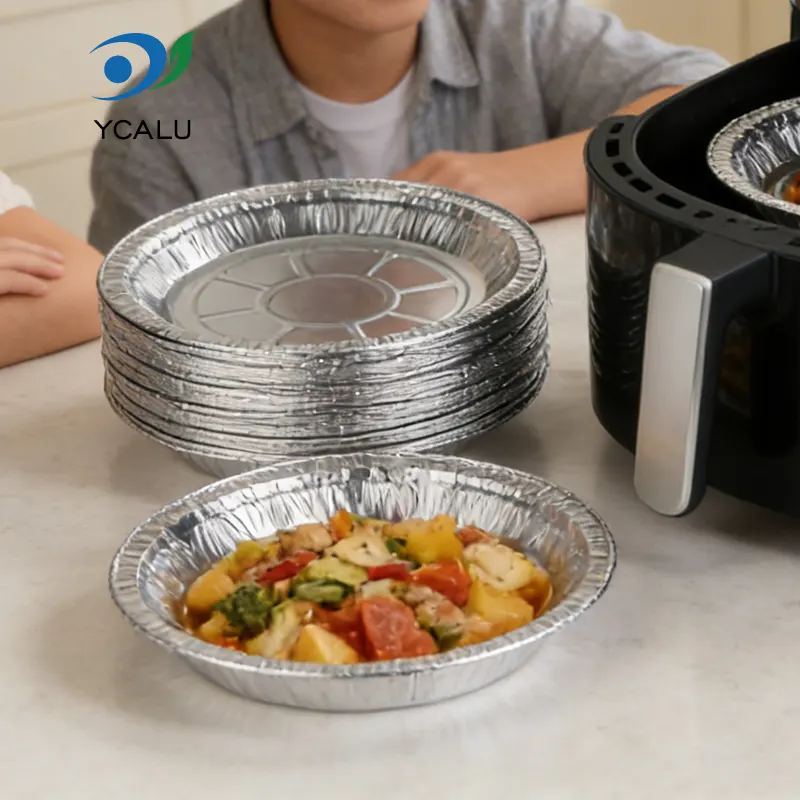 Yunchu Alüminyum Folyo Tek Kullanımlık Disk Hava Fritözü Gümüş Alüminyum Folyo Kabı Gıda sınıfı yüksek saflıkta alüminyum folyoda hiçbir yabancı madde ve koku yoktur ve ulusal gıdayla temas eden malzeme standartlarına uygundur. İster marine edilmiş barbekü, ister tazeleyici kavrulmuş sebzeler, ister yumuşak, yapışkan ve tatlı kavrulmuş tatlılar olsun, çiğ ve pişmiş malzemelerle doğrudan temas halinde olabilir. Zararlı maddelerin sızma şansı yoktur. Gümüş parlak alüminyum folyo mükemmel ısı iletkenliğine sahiptir. Tek parça disk tasarımı çoğu hava fritözü boyutuna uyar. 6 inç, 7 inç ve 8 inç boyutlarında mevcut olan ürün, küçük porsiyonlara ve tüm aileyle paylaşmaya uygundur. Tekrarlanan ayarlamalara gerek yoktur. Kızartma sepetine kolaylıkla yerleştirilebilir ve malzemenin avantajlarından tam olarak faydalanılmasına olanak sağlar.