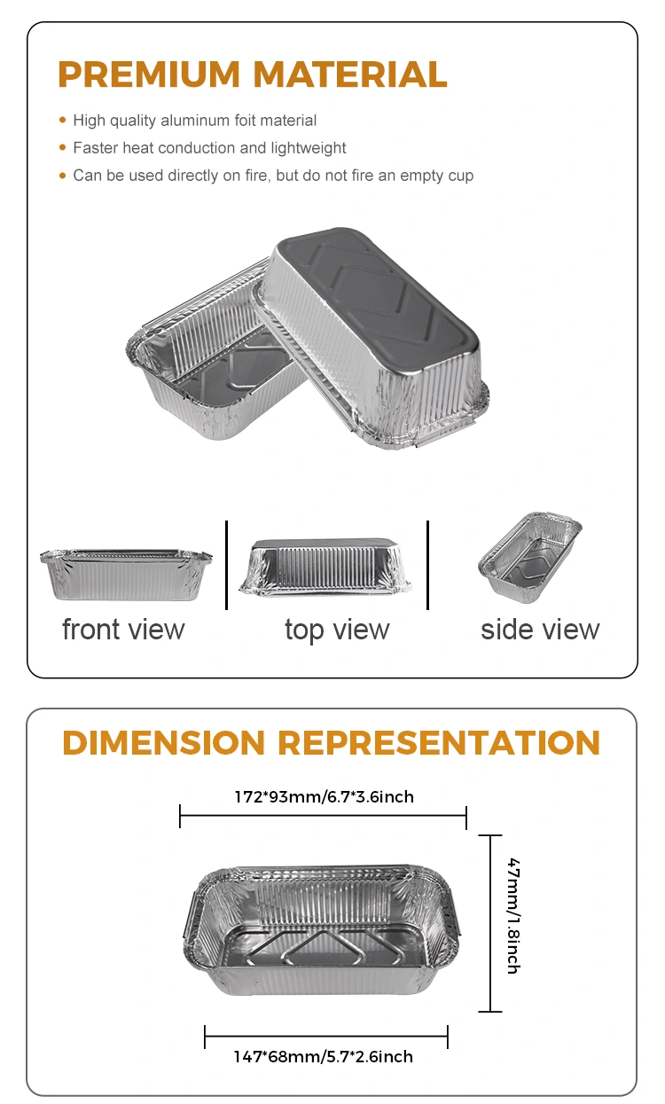Yunchu alüminyum folyo tedarikçisinden tek kullanımlık dikdörtgen pişirme gümüş alüminyum folyo kaplar, ızgara, sıcak tencere, gratin, paket servisi olan paketleme ve daha fazlası gibi çeşitli pişirme yöntemlerine uygun çok yönlü bir mutfak aracıdır. Bu konteyner, çeşitli tencere ve ekipmanlara uyacak kadar kompakttır ve farklı açık alev barbekilerinin ihtiyaçlarını karşılamak için çeşitli boyutlarda gelir. Hava fritörleri ve diğer ekipman uygulamaları, ısı ve yağ direnci, kolay pişirme gibi çeşitli gıda ürünleri yapmak için kullanılabilir.