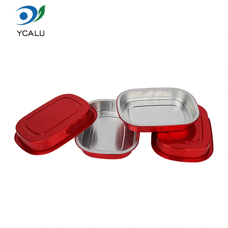 Tek kullanımlık kırmızı öğle yemeği kutusu kare Alüminyum Folyo Kapları