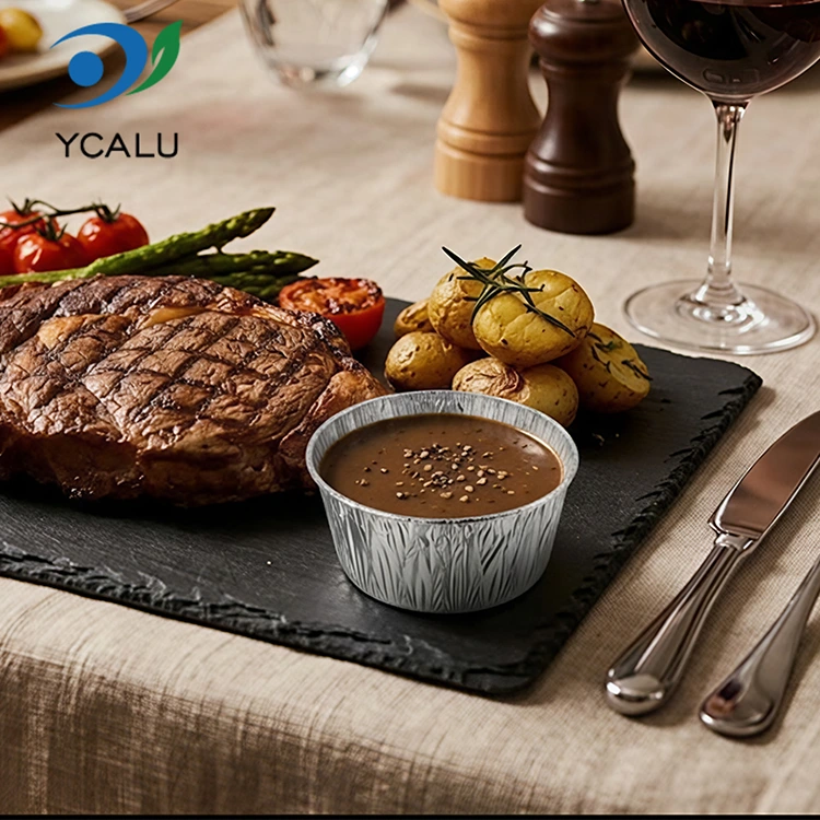 Tek kullanımlık yuvarlak sos Gümüş Alüminyum Folyo Gıda Kapları