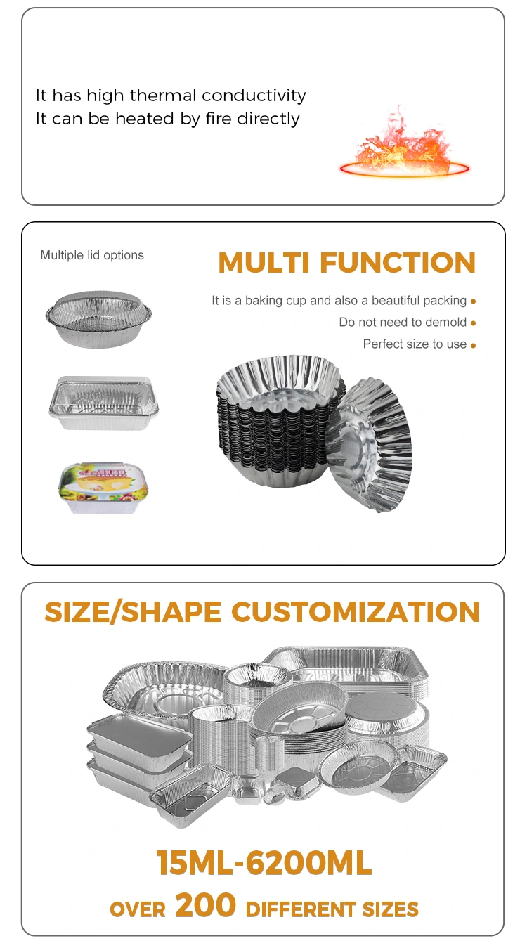 Yunchu alüminyum folyo yumurta tart tostu pişirme gümüş alüminyum folyo gıda kabı, ister ev yapımı ister ticari olarak üretilmiş olsun, farklı ihtiyaçları karşılamak için. Çevre dostu, güvenli malzeme ve çok yönlü tasarımı, pişirme meraklıları için ideal bir seçim haline getirir.