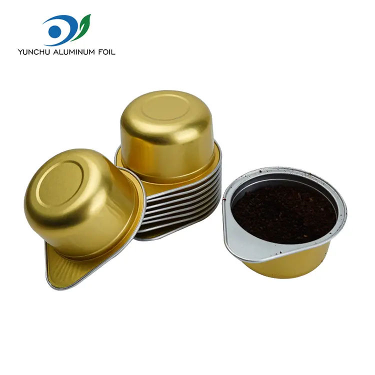 Yunchu Alüminyum Folyo Toptan Fabrikasında Isıl Sızdırmazlık Silikonsuz Boş Kahve Kapsülü için alüminyum folyo, çevre koruma ve gıda sınıfının teknik gereksinimlerini karşılayan ısıya dayanıklı alüminyum folyodan yapılmıştır. Bu ısıyla kapatılabilen folyo kapakların kapatılması kolaydır ve çoğu kahve makinesiyle uyumludur. Yuchu, kaplamalı alüminyum folyodan yapılmış kahve kapsülleri üretebilir ve ayrıca ısıyla kapatılmış kapak folyoları da sağlayabilir. Kahve kapsülü kapağı, iyi bir sızdırmazlık ve mükemmel bariyer özelliklerine sahip, her türlü kirlenmeyi ve lezzet kaybını etkili bir şekilde önleyebilen kabartmalı alüminyum folyodan yapılmıştır.