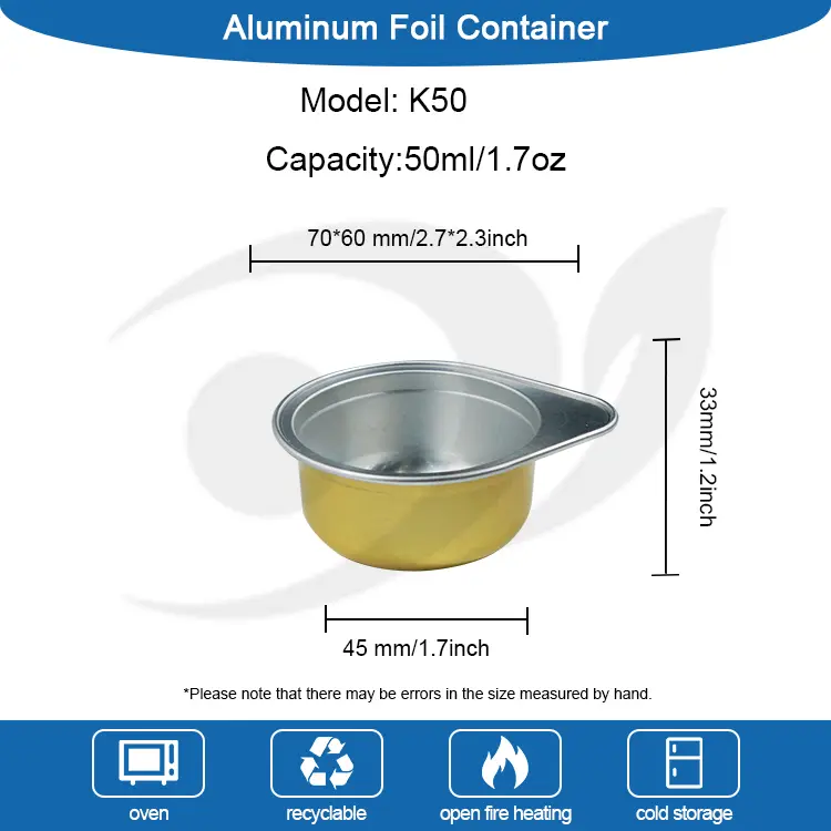 Yunchu Alüminyum Folyo Tedarikçisi K50 Isı yalıtımlı Silikon-Mühürsüz Boş Kahve Kapsülü Üst: 70*60mm, 2,7*2,3 inç, Taban: 45mm, 1,7 inç, Yükseklik: 33 mm 1,2 inç, 50ml 1,9oz yiyecek tutabilir, tüm Nespresso kahve makinelerine (nespresso), paketlenmiş espresso tozuna uygulanabilir veya daha uzun raf ömrü için nitrojenle durulanabilir.