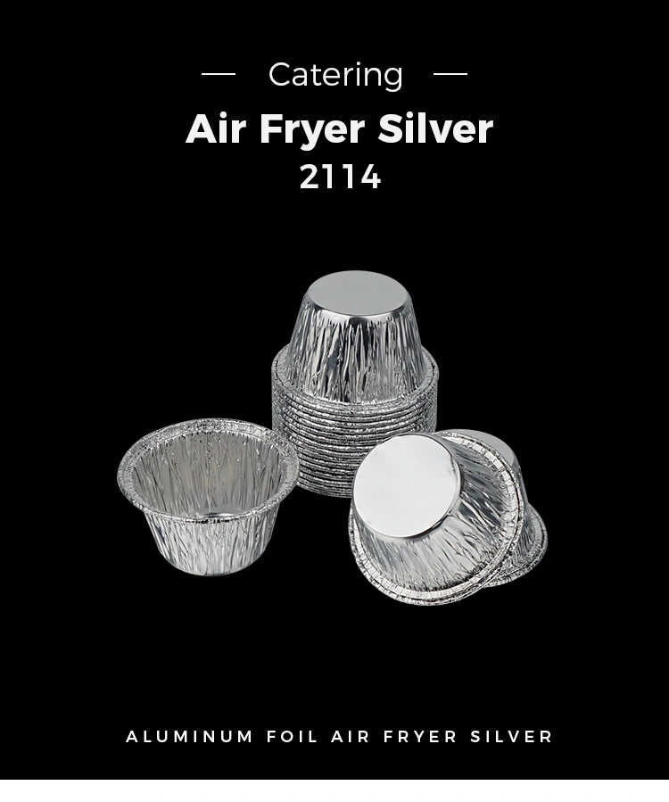 • Bir kerelik küçük yuvarlak kek hava fritözü Gümüş Alüminyum Folyo Gıda KaplarıBir kerelik küçük yuvarlak kek hava fritözü Gümüş Alüminyum Folyo Gıda Kapları
