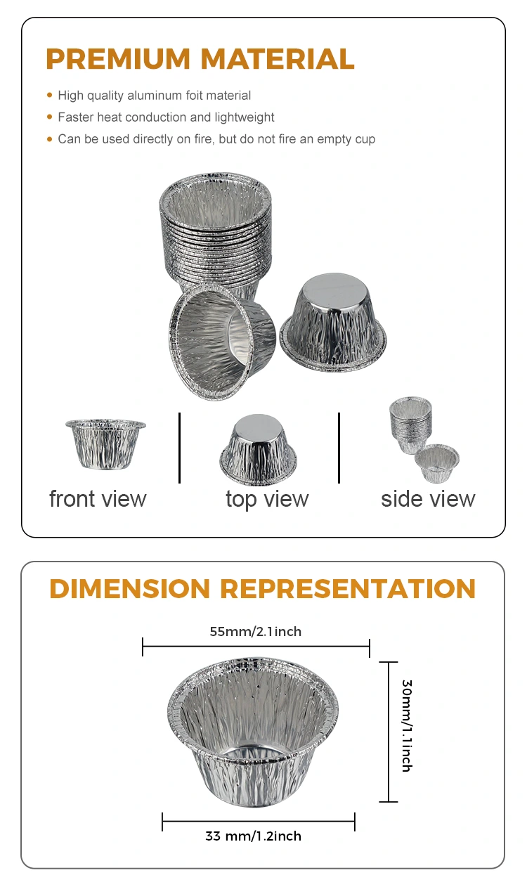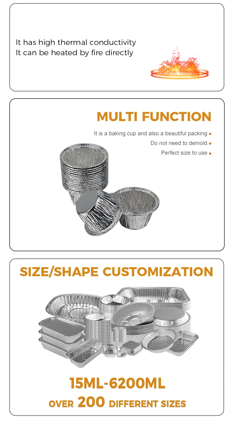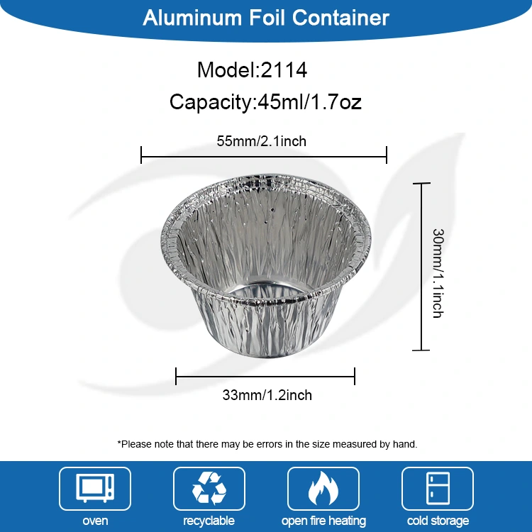 Yunchu Alüminyum Folyo Üreticisinin tek kullanımlık küçük yuvarlak kek hava fritözü gümüş alüminyum folyo kabı, ABD FDA gıdayla temas güvenliği sertifikasını geçen ve AB SGS gıdayla temas eden malzeme güvenliği standartlarına uygun 8011-O gıda sınıfı alüminyum folyo kullanıyor. Profesyonel testlerden sonra kokusu yoktur ve zararlı kalıntısı yoktur. Her türlü gıdaya doğrudan temas edebilir. Deforme olması veya kırılması kolay değildir. Etkili bir şekilde sızdırmaz ve yapışmazdır. Kek hamuru, puding sıvısı, sos vb. gibi sıvı malzemeleri doğrudan tutabilir. Dış yuvarlatılmış kenar tasarımı çizilmez olup ellerinizi çizme riskini azaltır. Sıcaklık direnci aralığı -40°C ila 220°C'yi kapsar ve hava fritözlerine, fırınlara, buharlı pişiricilere ve mikrodalga fırınlara (orta-düşük ısı) uyarlanabilir. Mini kekler ve yumurtalı turtalar pişirmek için doğrudan hava fritözüne yerleştirilebilir ve ayrıca dondurulmuş malzemeleri çözüldükten sonra doğrudan ısıtmak için de kullanılabilir ve çeşitli pişirme ve fırınlama ihtiyaçlarını karşılar.