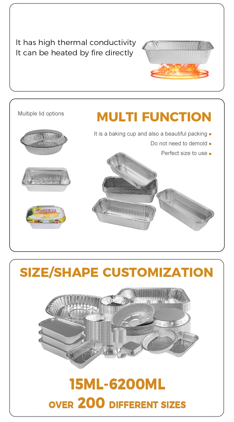 Yunchu alüminyum folyo tedarikçisi tarafından sağlanan 2325 dikdörtgen hava fritöz paket servisi gümüş folyo kabı, bir açık hava barbekü veya bir aile toplantısı olsun, çeşitli durumlar için uygundur. Tüccarlar desenleri özelleştirebilir ve ihtiyaçlarına göre yazdırabilir, bu kapları, açık alev ısıtma ve yağ lambası ısıtmayı destekleyen, ısıyı eşit olarak ileten, yiyeceklerin eşit olarak ısıtılmasını ve tavaya yapışmamasını sağlayan paket servisi olan paketleme için benzersiz bir seçim haline getirebilir. Hava fritözüne yerleştirildiğinde bile hemen kullanılabilir ve alttaki içbükey ve dışbükey tasarımı sürtünmeyi arttırır ve kaymayı önler. Yanlardaki takviyeler ürünün sağlamlığını arttırırken, hemming tasarımı kapakta rahat bir uyum sağlar ve yiyeceklerin sıcaklığında etkili bir şekilde kilitlenir.