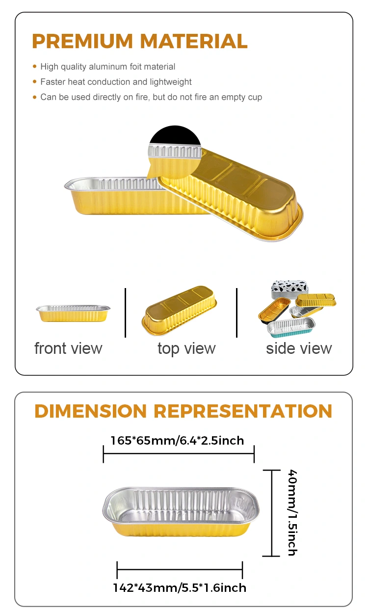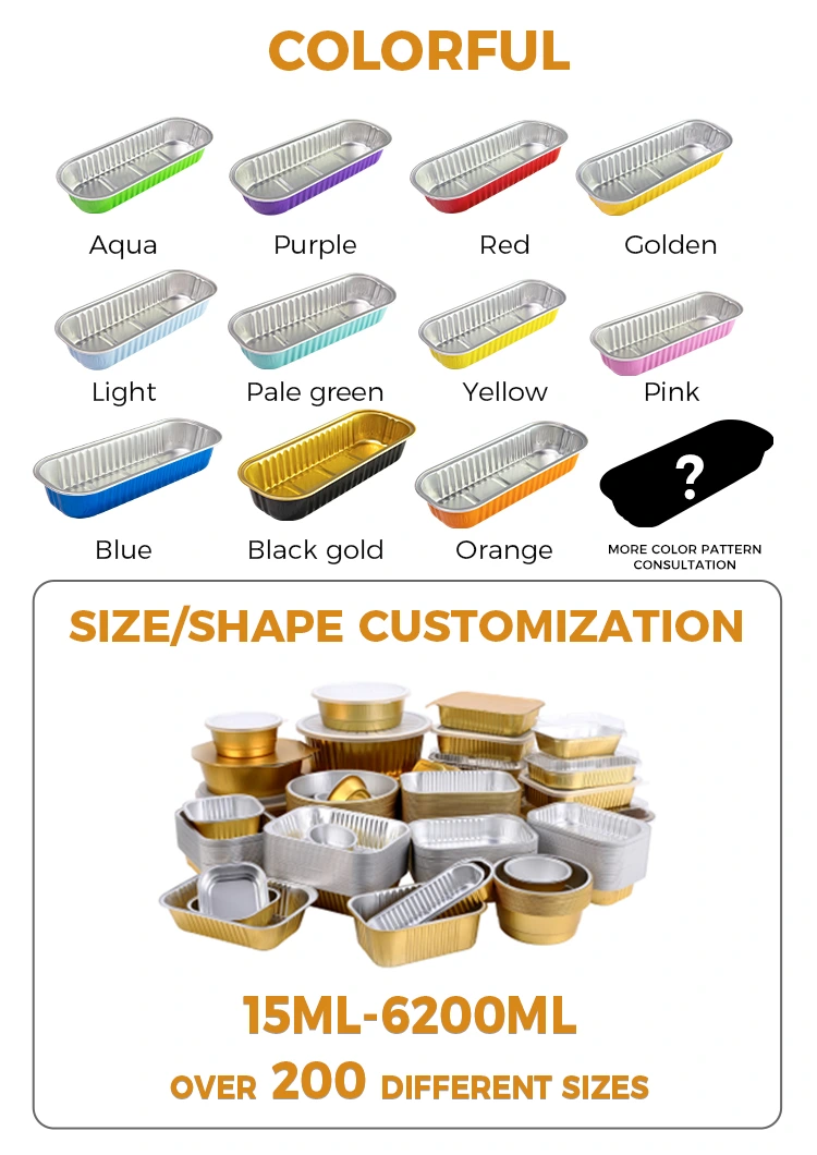 Yunchu aluminum foil supplierRectangular baking cake Smoothwall Aluminum Foil Containers is made of 8011 food-grade aluminum foil material, choose to store in the refrigerator with lid, aluminum foil lid and PET fully transparent plastic lid, cannot be used in air fryer, oven and other equipment, universal design air fryer, oven, steamer can be used with various equipment, can be reused hygienic and Çevre dostu, alttaki içbükey ve dışbükey tasarımı sadece ürünün stabilitesini arttırmakla kalmaz, aynı zamanda kayma karşıtı rol oynar; Yanlardaki takviyeler, ürünün sağlamlığını arttırır, daha dayanıklı hale getirir ve buna ek olarak, bu dikdörtgen ışık duvarlı alüminyum folyo kabı, tercihlerinize göre özelleştirmenizi sağlayan çeşitli renkler sunar.