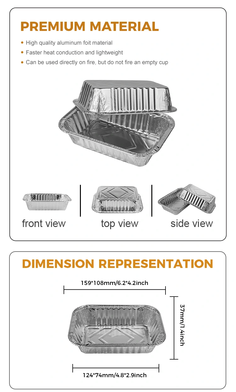 Yunchu alüminyum folyo tedarikçisinden 2322 dikdörtgen fırın tavası gümüş folyo kabı, gıda sınıfı alüminyum folyo malzemesi ile üretilir ve gıdaların güvenliğini ve kokusuz doğasını sağlar. Ürün temizsiz ve geri dönüştürülebilir, kullanırken size daha fazla gönül rahatlığı sağlar. 159 mm (6.2 inç) ve 108 mm (4.2 inç) üst çap, 124 mm (4.8 inç) ve 74 mm (2.9 inç) alt çap, 37 mm (1.4 inç) yüksekliğe ve yaklaşık 400 mL (14.1 oz) kapasiteye sahiptir. Alüminyum folyo kutuları, özellikle küçük kekler veya meyve malzemeleri olsun, özellikle paket servisi ve alışveriş merkezi yiyeceklerinde sıcaklık kontrolü için uygun olan mükemmel ısı koruma fonksiyonlarına sahiptir.