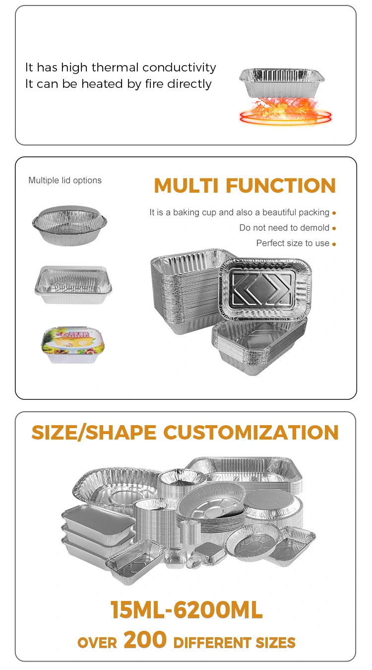 Yunchu alüminyum folyo tedarikçinin modeli 2322 Dikdörtgen fırın tavası gümüş alüminyum folyo kap, mükemmel ürün kalitesi ve benzersiz tasarımı nedeniyle pazarda çok popülerdir. Ürün yapısı, çeşitli senaryoların ihtiyaçlarını karşılamak için esnektir ve marka imajının geliştirilmesine yardımcı olan logo ve desen baskı da dahil olmak üzere özelleştirilmiş hizmetler sunar. Buna ek olarak, alüminyum folyo kapak kombinasyonu toptan sipariş hizmeti de 1000 adet tek bir özelleştirilmiş MOQ ile çok tercih edilmektedir.