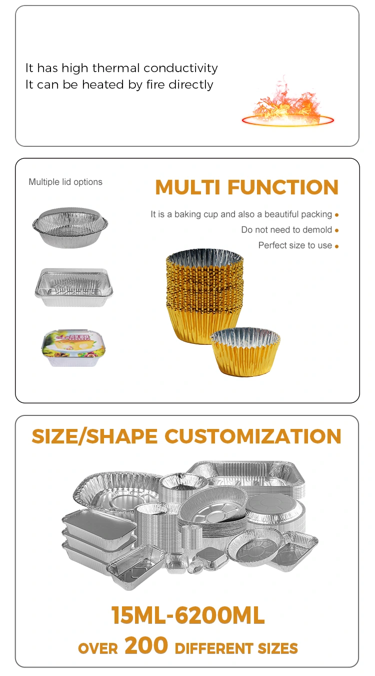 Bu yuvarlak küçük paket Gümüş Alüminyum folyo kapları her türlü küçük fırın ürünlerini paketlemek için uygundur, tüm ürünlerin ulusal güvenlik standartlarını karşılamasını sağlamak için her üretim adımını kalite kontrolü açısından kesinlikle kontrol ediyoruz ve Alman ERP sertifikası, EU SGS Sertifikasyonu ve ISO9001 sertifikası.